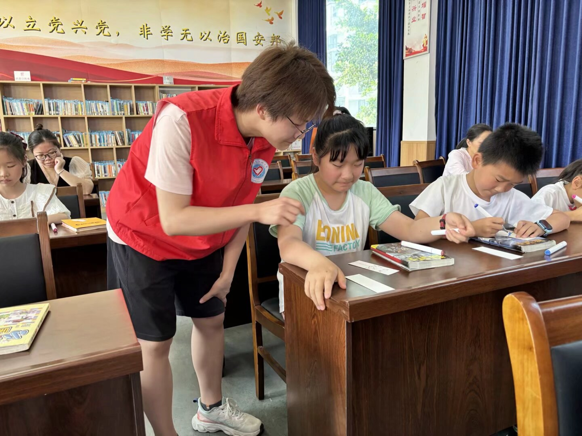 在活动现场,志愿者们引导小朋友们带着自己喜欢的书籍,沉浸在阅读之中。其中一位小朋友向志愿者说,她已经看过一遍四大名著,最喜欢的角色是《红楼梦》中的林黛玉,为黛玉的离世而惋惜。部分家长也带上书籍,同孩子们一起阅读,以身作则引导孩子们养成终身阅读、终身学习的习惯。
