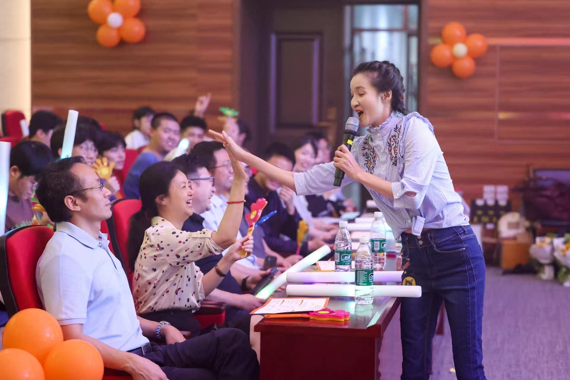 第三篇章 “携手同行・向未来”,将晚会氛围推向高潮。团委青志协带来的歌舞串烧《舞动青春》,动感的旋律瞬间点燃全场;彭政杰同学的舞蹈《红昭愿》优美动人;研究生会文体部的乐器合奏《晴天》,则为晚会带来了别样的艺术享受。最后,毕业班辅导员阮丽娜与2025届毕业生代表共同唱响《再见》,在悠扬的歌声中,为晚会画上了圆满的句号。