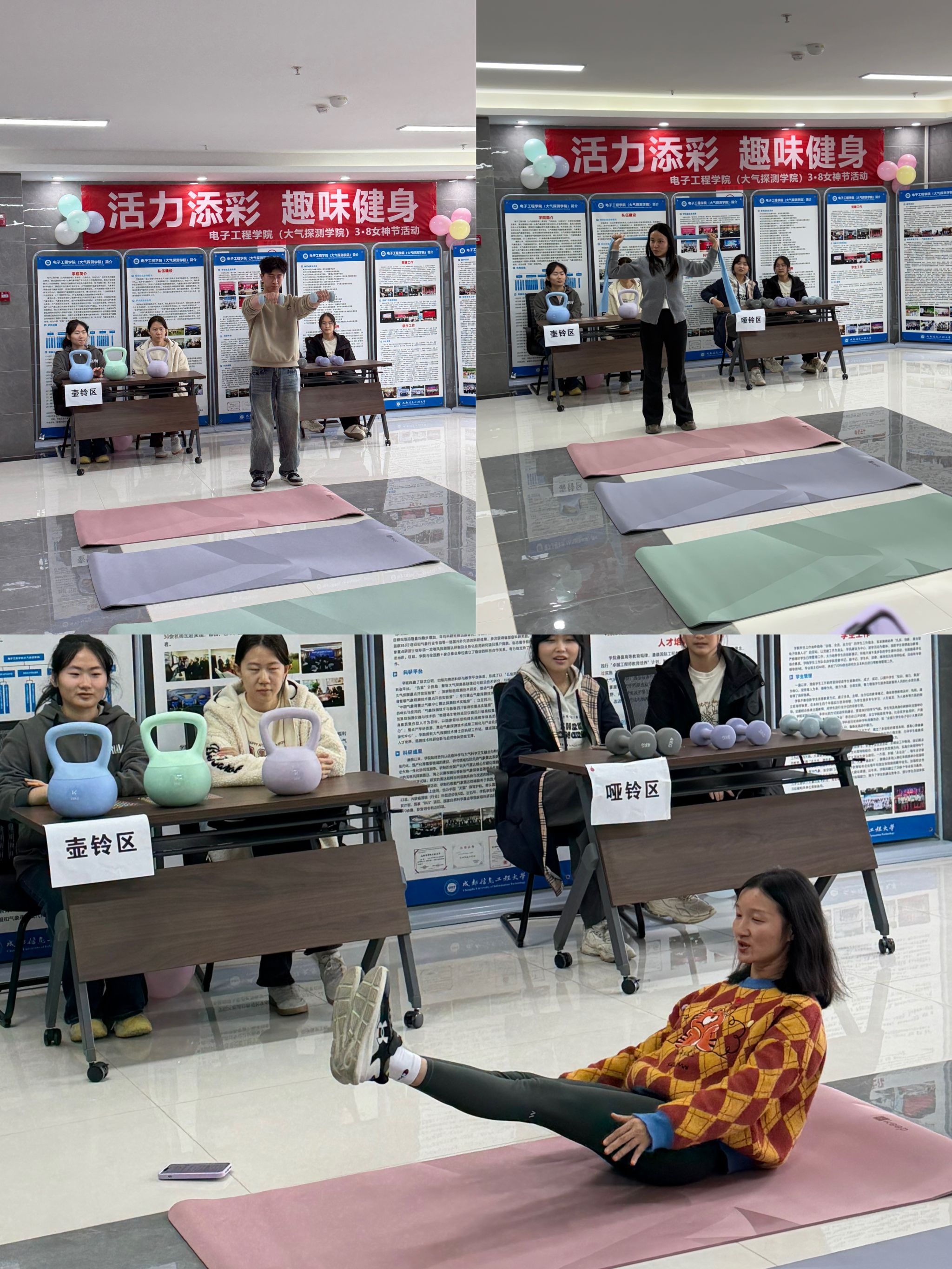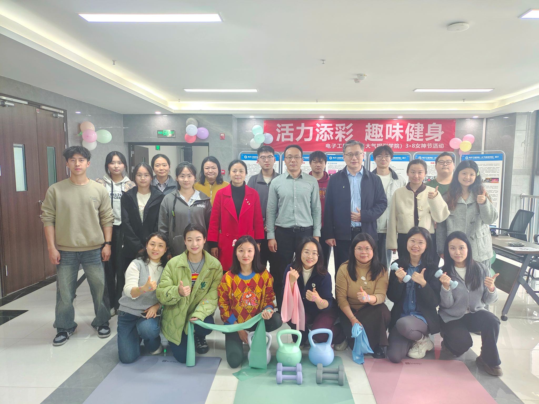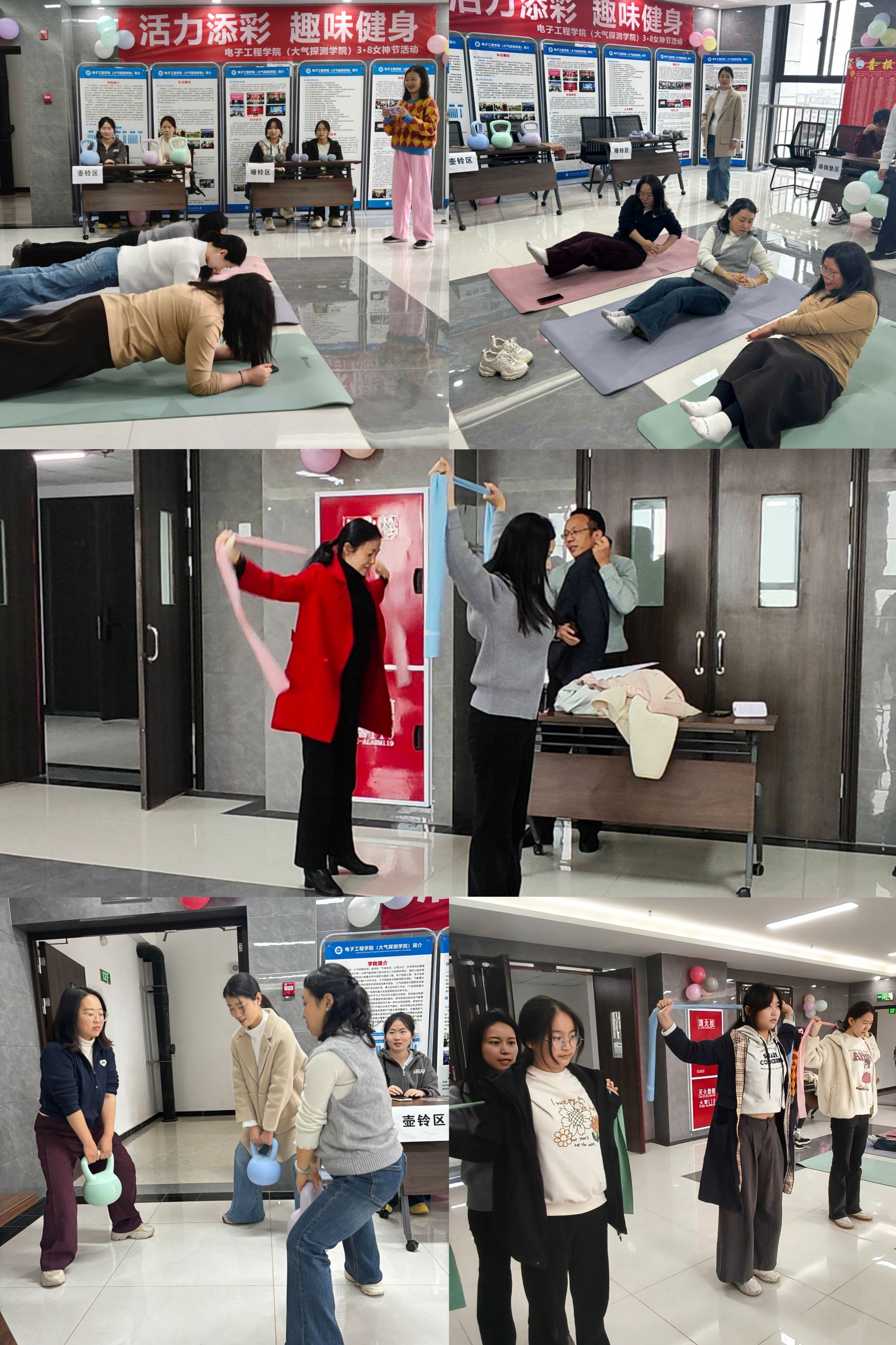春风送暖,万象更新。为庆祝第116个“三八”国际妇女节,丰富师生的校园文化生活,3月6日下午,电子工程学院(大气探测学院)在新气象12楼大厅举办了“活力添彩,趣味健身”主题趣味健身活动。
