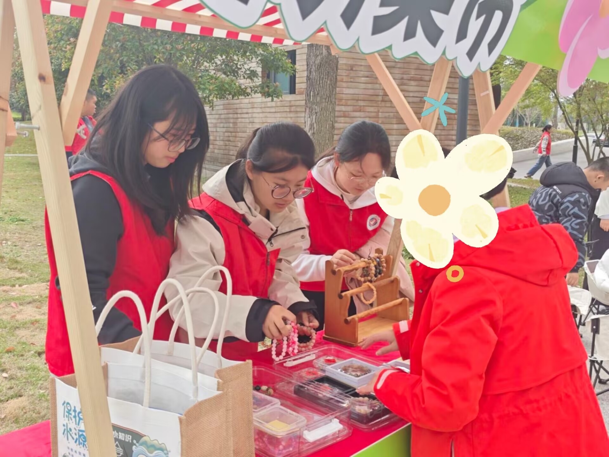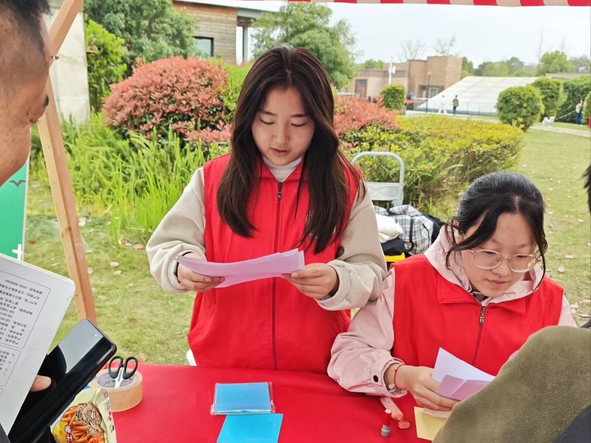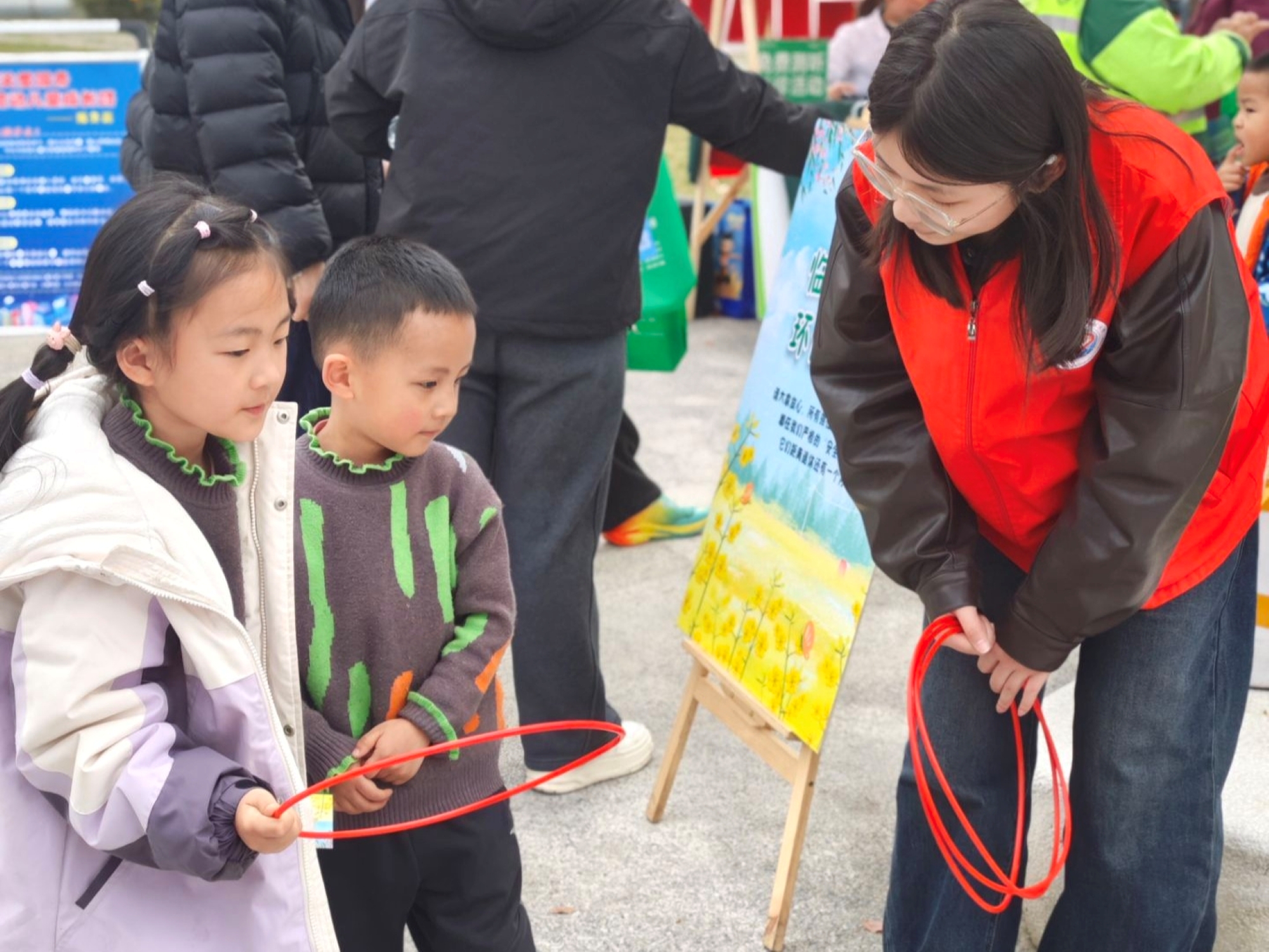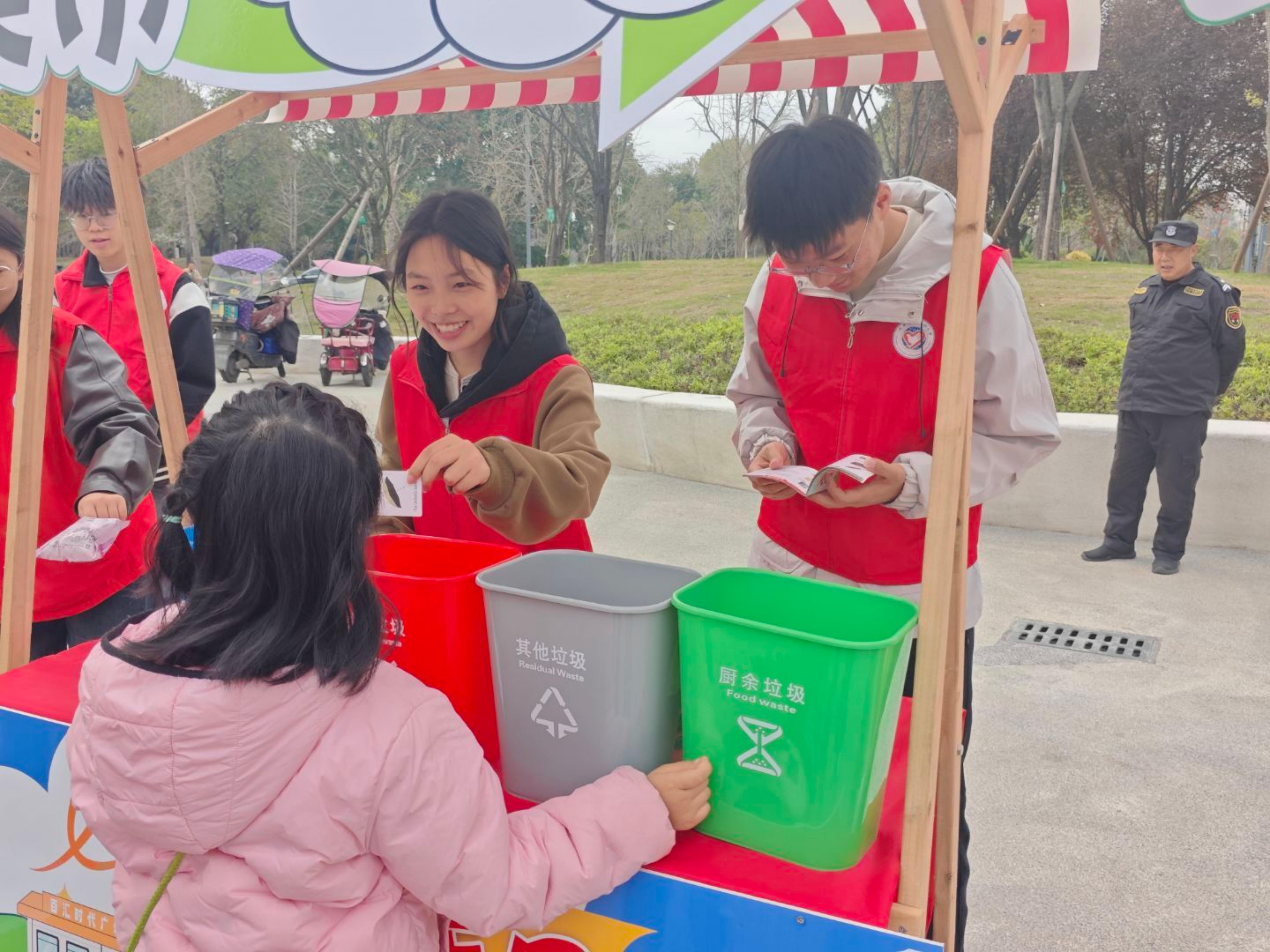 活动筹备阶段,志愿者们积极配合社区工作人员布置活动场地,认真完成活动前期准备工作。活动开始后,志愿者们合理分工,默契配合,分为两组开展工作:一组驻守摊位,与参与活动的居民们互动,耐心解答各类疑问;另一组穿梭于各个摊位间,主动指引、带领被活动吸引前来的居民参与到活动中。