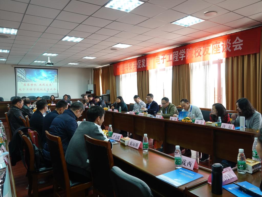 代表大会后,与会的二十余位电子工程学院校友代表回到学院,在气象楼215会议室与学院老师欢聚一堂,追忆同窗旧事,再叙师生情谊,畅谈人生感悟,共话发展。学院院长杨玲、党总支书记高永华、副院长孙秀斌、副书记杨勇及各教研室教师代表,党政办、学工办人员参加了座谈会。