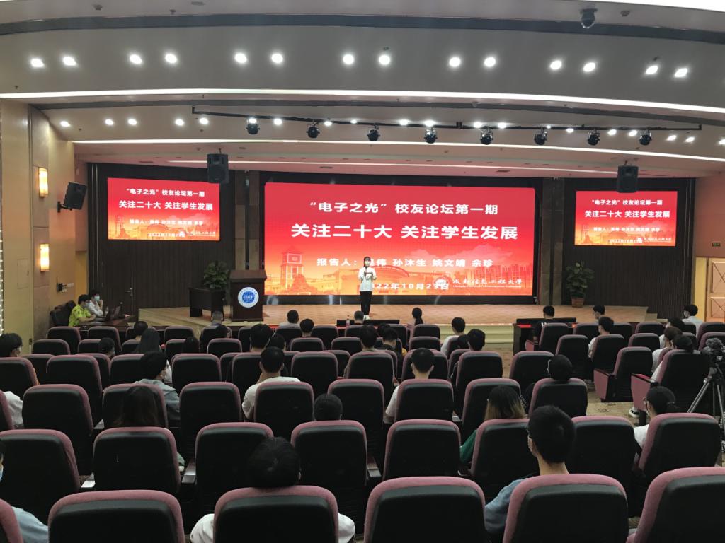 10月23日,在党的二十大胜利召开的春风里,在william威廉中文建校71周年的欢庆中,以“关注二十大,关注学生发展”为主题的,我院“电子之光”校友论坛第一期在国际会议厅成功举办并通过网络进行全程直播。参加本次论坛活动的有学院党委书记缪燕平、党委副书记杨勇、学院杰出校友代表孙沐生、吴伟、姚文靖、余珍、学院党政办主任鲁波、辅导员周意超、谢阳,以及各年级学生代表。本次校友论坛由唐晶主持。