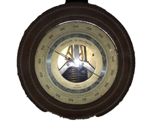 工作原理:用弹性金属做成的薄膜空盒作为感应元件,将大气压力转换成空盒的弹性移位,通过杠杆和传动机构带动指针。当顺时针方向偏转时,指针就指示出气压升高的变化量,反之,指示出气压降低的变化量。当空盒的弹性应力与大气压力相平衡时,指针就停止不动,指针所指示的气压值就是当时的大气压力值。