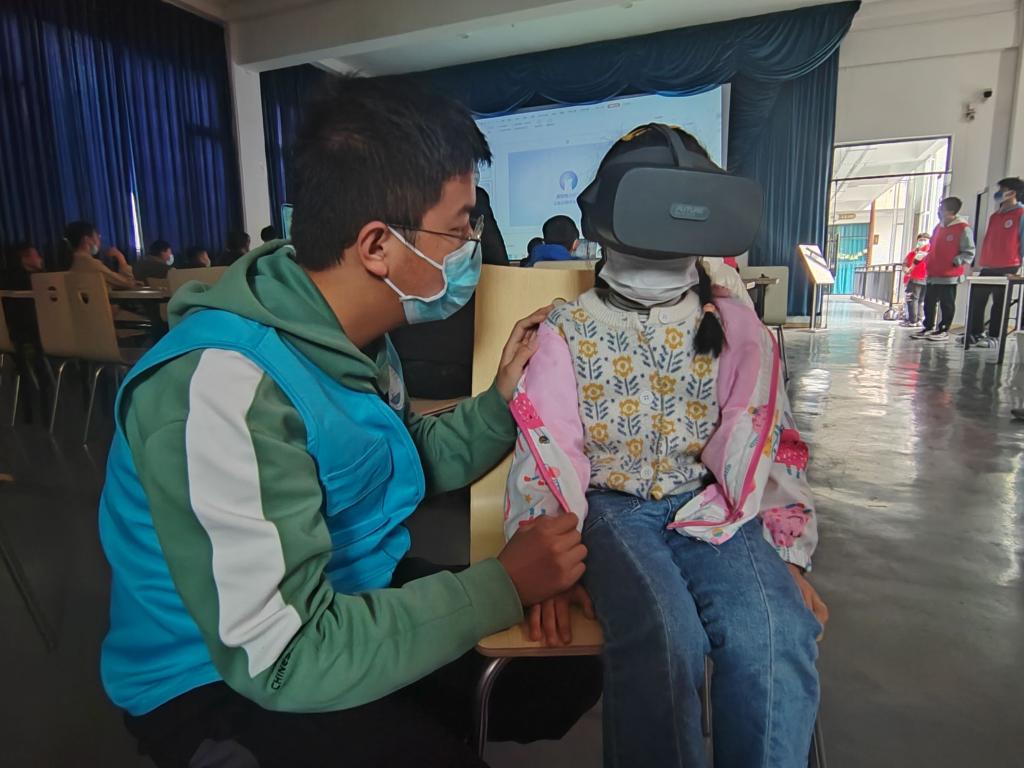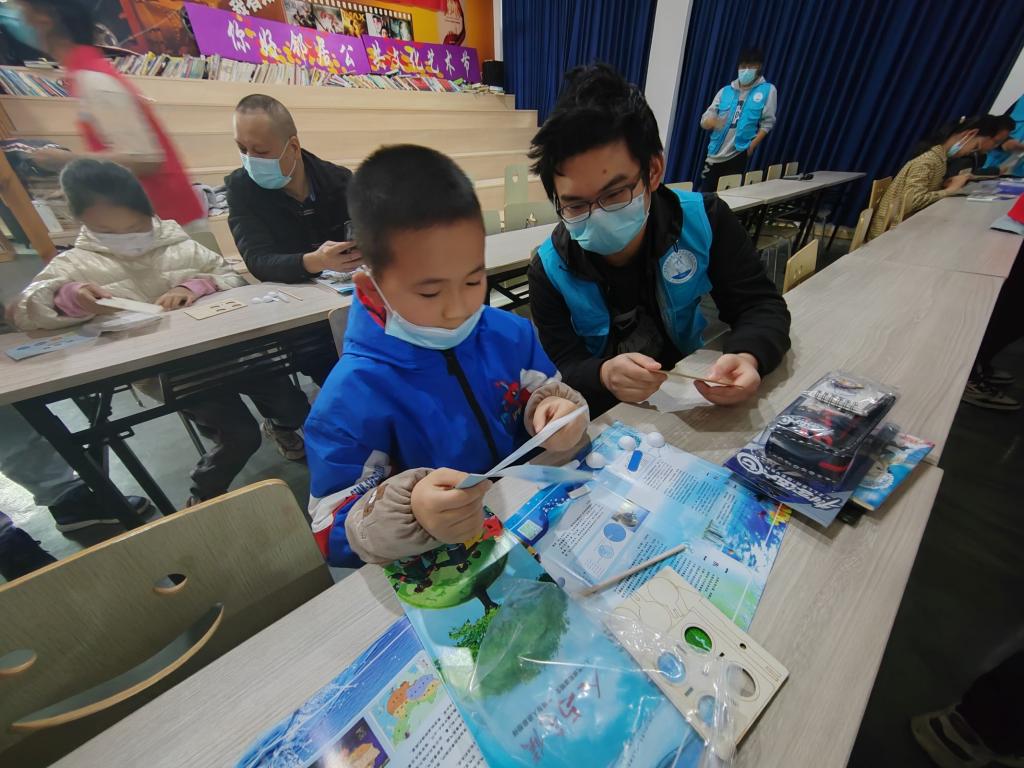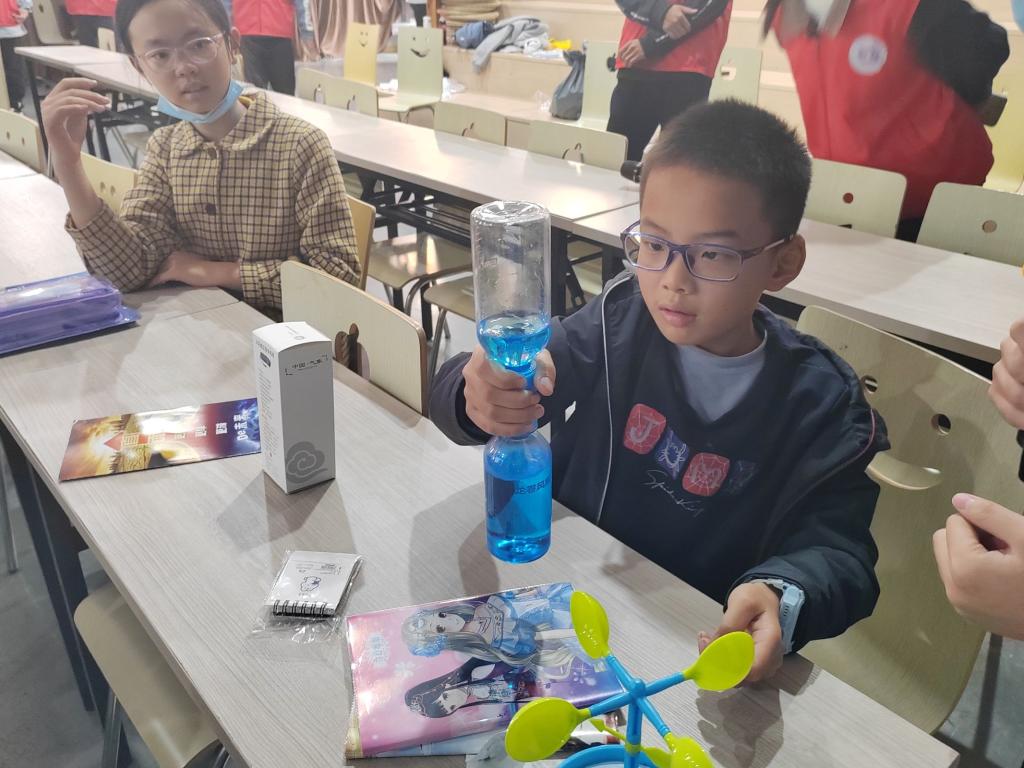 在社区活动室,志愿者给社区小朋友上了一堂生动的气象科普小实验课程,课堂上志愿者演示了三个气象小实验:龙卷风的形成、温度的测量、风的测量,小朋友们听得非常专注,并且主动要求进行了实验体验。课后也让社区小朋友体验了气象灾害VR实景体验。