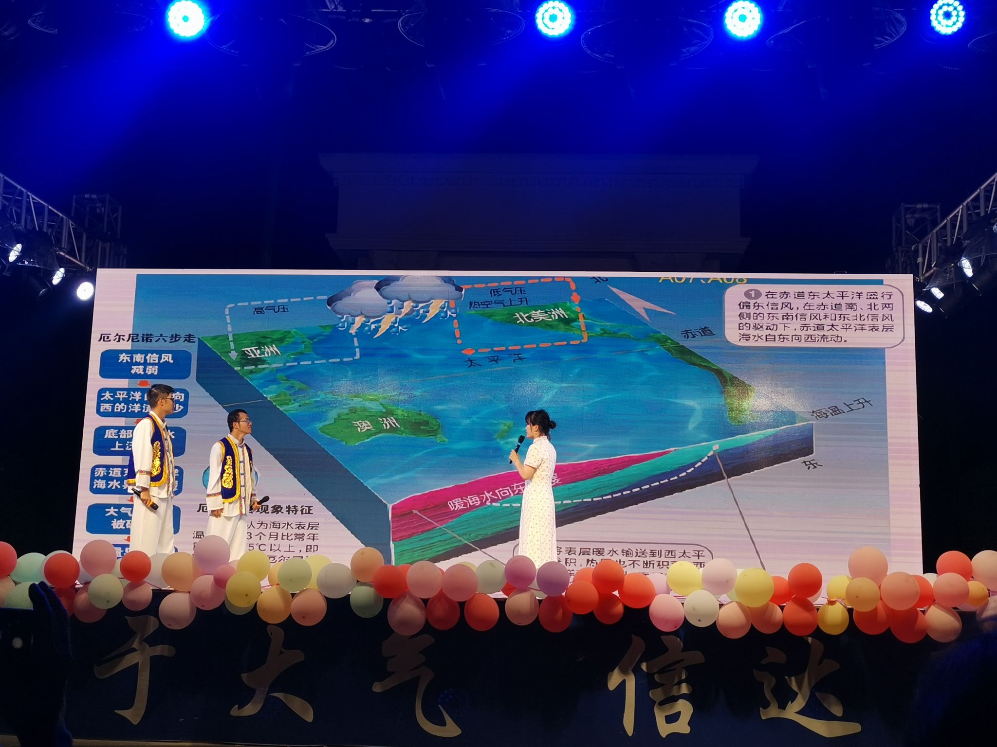 结合时势,话剧展演时还灵活增加了今年长沙出现的下击暴流天气现象,给观众详细科学地解释了下击暴流是怎样的一种天气现象。话剧结尾还以今年我国第一颗低倾角轨道卫星发射上空为时势背景,呼吁民众要关心气象、了解气象。