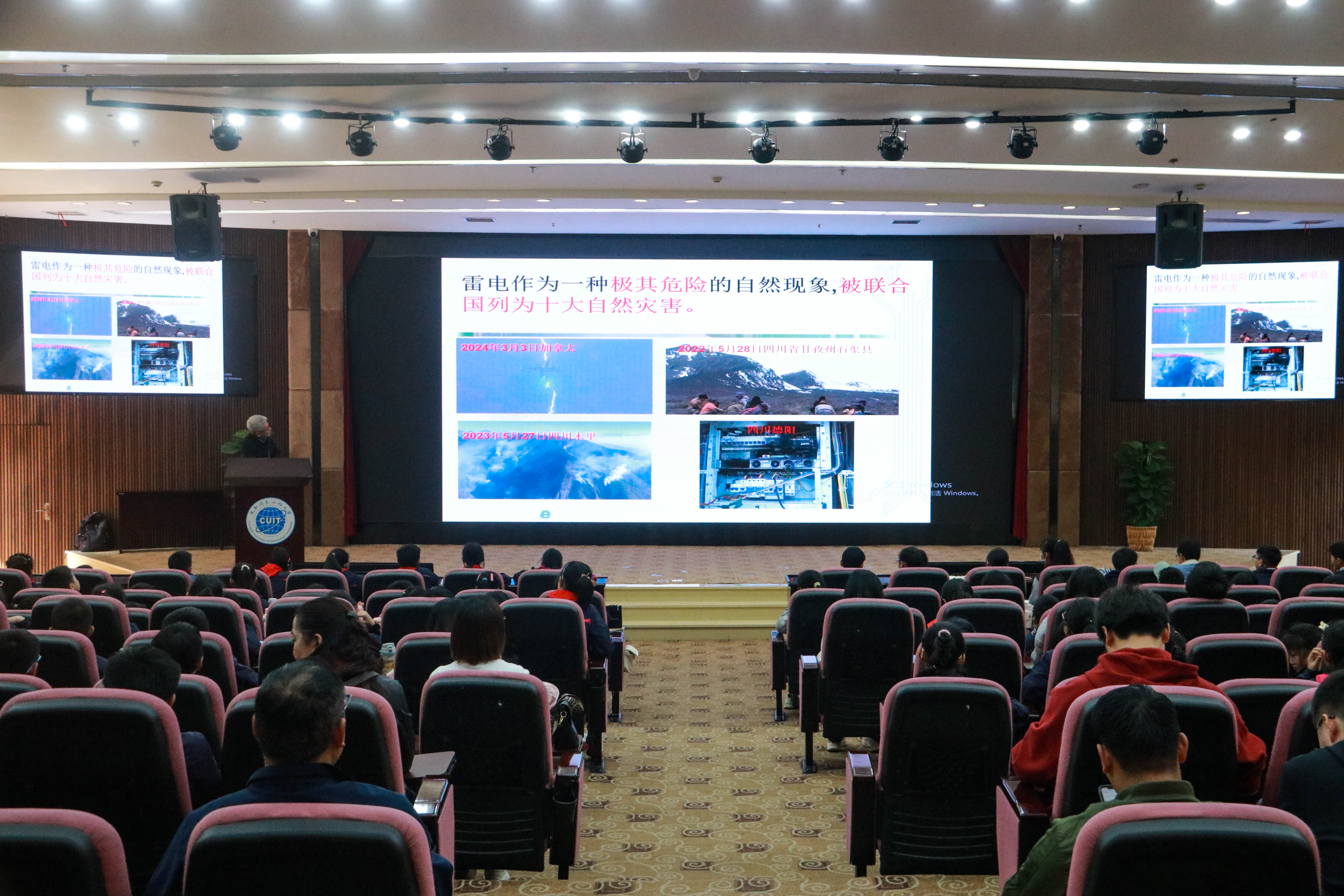 3月21日上午11时,电子工程学院刘昆教授在学校国际会议厅为参加此次活动的全体师生带来一场精彩纷呈的雷电知识科普讲堂。刘教授用生动形象的科研视频给同学们讲述了与雷电有关的气象知识,带领同学们认识了雷电、雷电可能带来的危害、怎样预防雷电灾害。讲座后,刘昆教授通过游戏形式进行了互动提问环节,充分调动同学们参与的积极性。