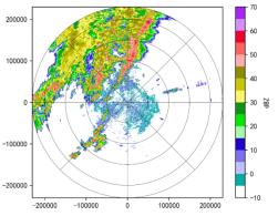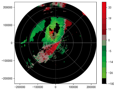 在定安县气象局团队成员对海口雷达与定安雷达观测数据进行对比分析,海口SA波段双线偏振天气雷达采用VCP21体扫模式运行,定安X波段双线偏振多普勒天气雷达(方舱式)采用垂直定向模式运行。