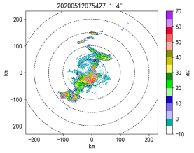可以看出在定安上空有大约50dBZ的反射率强度。