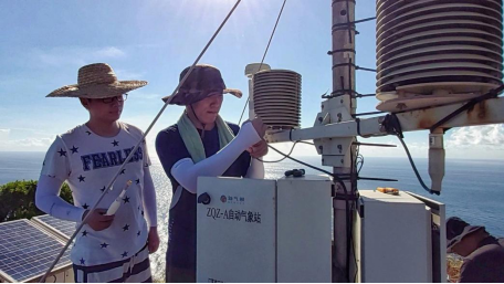 此次参加观测实验的还有苏德斌教授团队的7名学生,他们在参与项目数据分析的同时,也适时进行了相关实习,如跟随探测中心工作人员参与设备检定与维护工作,参与风速、温度和湿度检定工作,在定安气象局进行雷达维护,并随探测中心人员出海前往七洲列岛进行自动气象站维护维修。