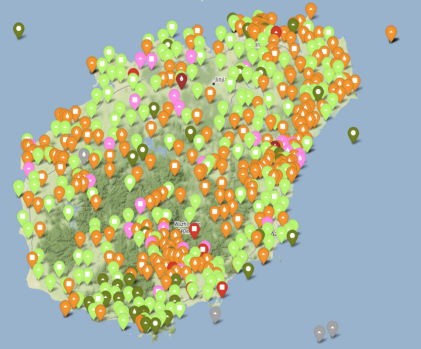 团队成员与探测中心工作人员合作,对海南省所有自动站分布进行了可视化处理,并分析了自动站的数据可用性及到报率,其结果如下: