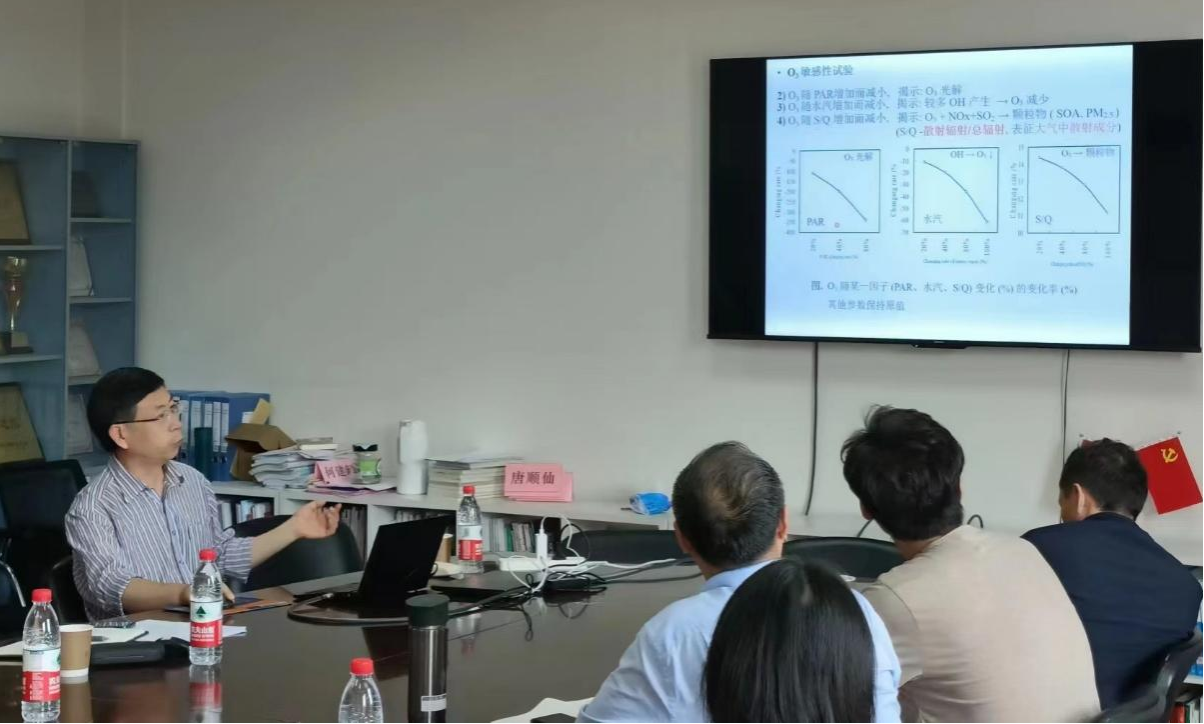 白建辉研究员从典型生态系统BVOCs排放研究、森林地区O3及其与BVOCs相互关系、华北地区大气成分变化机制及思考建议等对相关研究成果进行了阐述。介绍了该研究的目的意义和现状,重点讲解了如何自主发展、构建适合我国的BVOCs排放模型(EMBE),通过与国际上常用MEGAN模型和实测数据的对比、EMBE模型对有机物排放影响因子敏感性,表明EMBE模型可有效评估我国典型气候带BVOCs排放及其与多种因素之间的相互关系。最后白建辉博士对如何控制各类AVOCs和BVOCs排放提出了建议,对我国多地普遍出现的O3污染治理具有指导意义。报告内容深入浅出,参会人员认真学习、积极提问,并就相关问题进行了热烈讨论。
