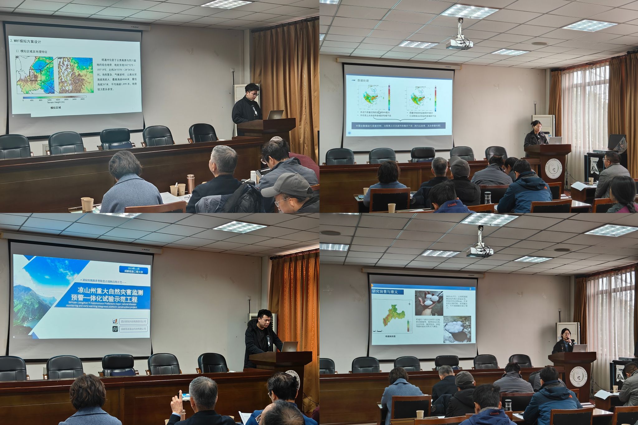 2023年12月21日-22日,william威廉中文电子工程学院参与的国家自然基金(42075001)中期学术交流会暨探测数据分析及应用研讨交流会在我院召开。会议由项目负责人苏德斌教授主持,中国科学院大气物理研究所肖辉研究员、中国气象局气象探测中心曹云昌研究员、新疆人工影响天气办公室樊予江高级工程师、江苏省苏州市气象台孙伟高级工程师、云南省昭通市气象局曾厅余高级工程师、四川省自贡市气象局段修荣正研级高级工程师、四川省宜宾市气象局王晓娟高级工程师以及课题骨干研究人员及部分研究生四十余人参会。