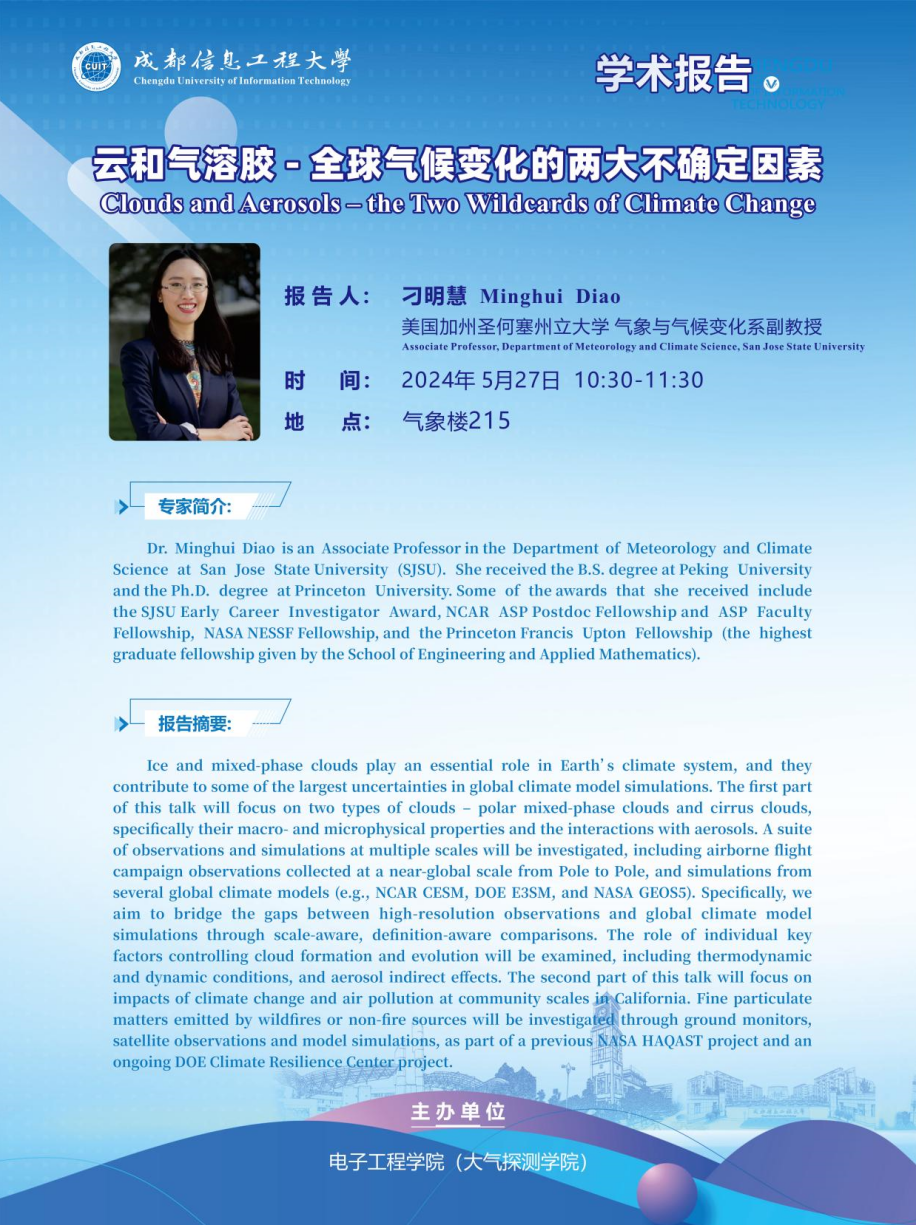 报告题目:云和气溶胶-全球气候变化的两大不确定因素