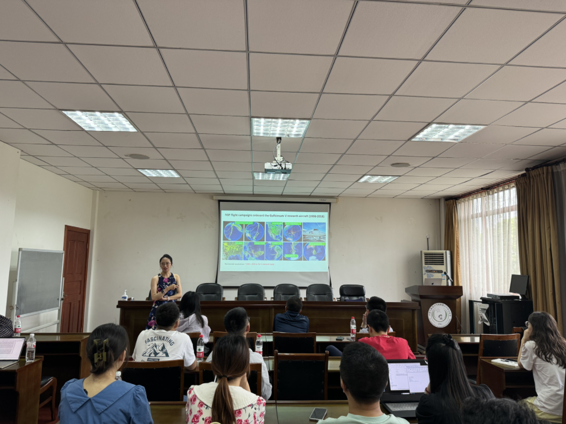 刁明慧副教授详细介绍了利用飞机观测分析云相态的算法,冰云、混合相云和水云云量在南大洋和南极洲的分布,分享了利用机器学习方法分析气象条件和气溶胶对卷云的作用,指出了目前全球模式低估了气溶胶对冰云的间接效应,她还探讨了野火对美国加州地区的影响。