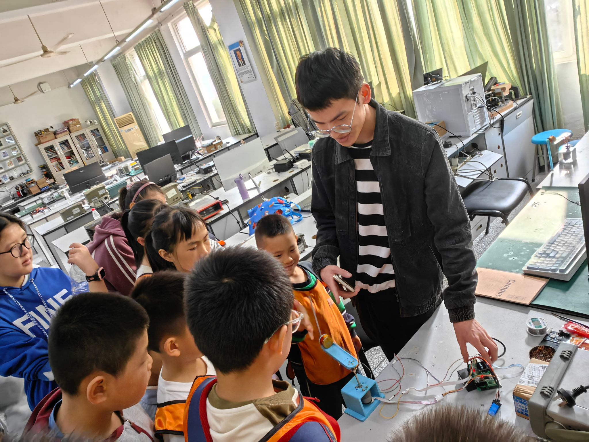 昨天,我们的科技创新实验室迎来了与学生爱心协会6++联合组织的特别活动!一群8至14岁的小朋友走进实验室,开启了一场充满神奇与乐趣的电子科技探索之旅。科创实验室的哥哥姐姐们带领小朋友们感受电子世界的魅力,讲解了基础电子知识,介绍了各种实验仪器及精彩的电子作品——如倒立摆、智能蜘蛛等,甚至在现场手把手指导他们编程点灯,让小朋友们真正体验了一把科技创作的奇妙!